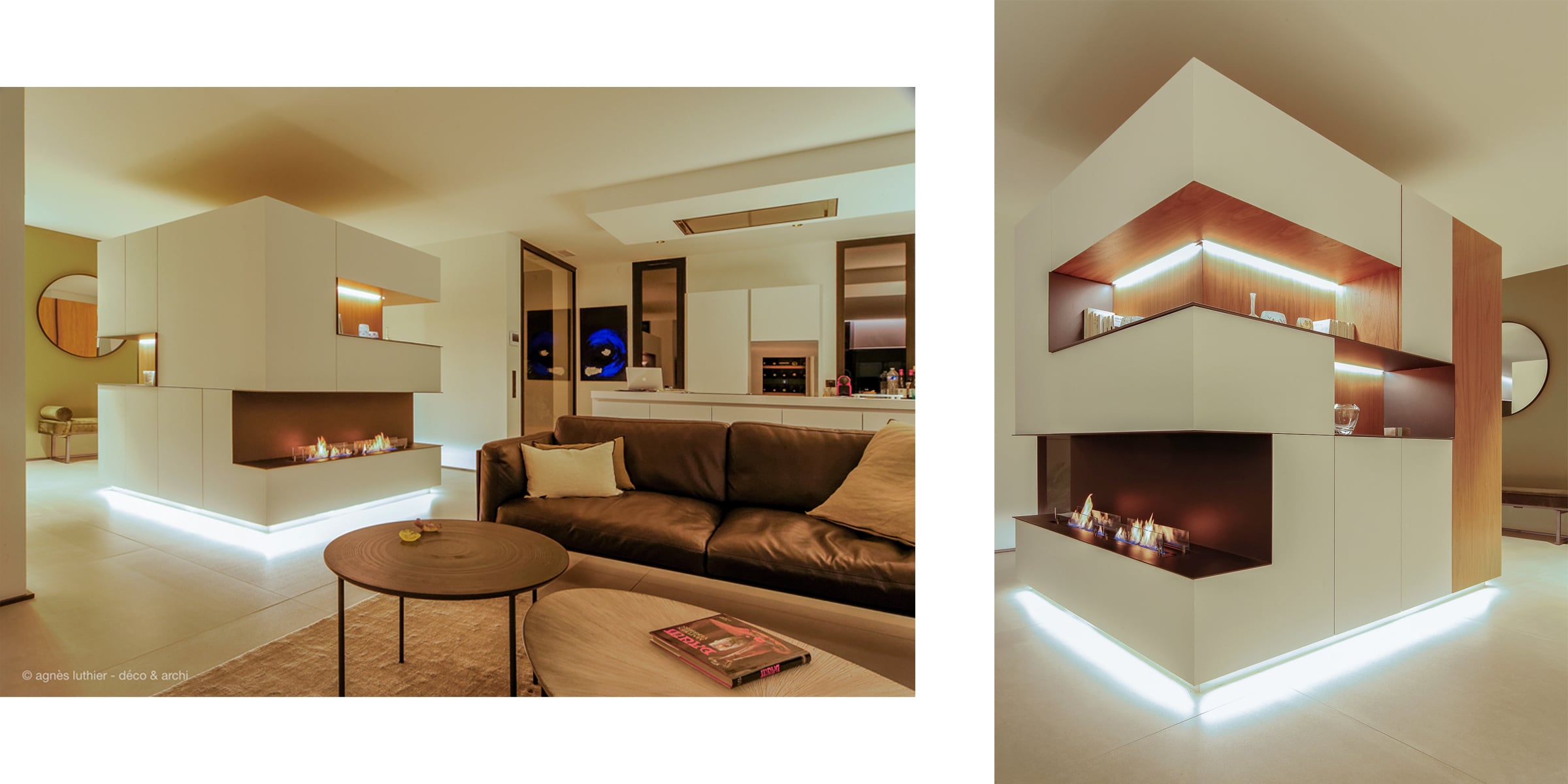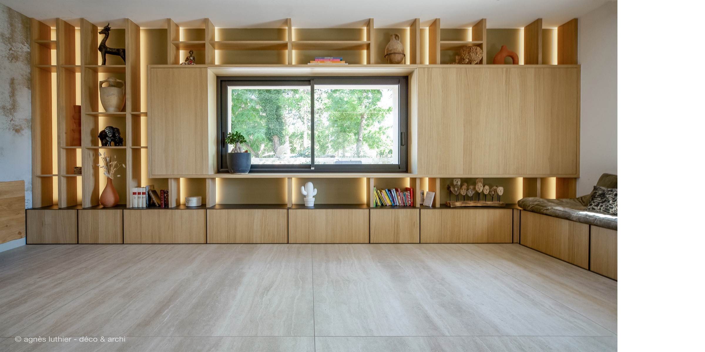 Voir le projetcréation d’une pièce de vie où les rangements créent le décor