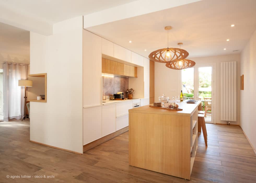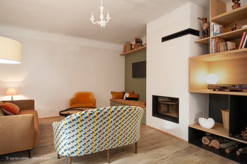 réhabilitation d’une maison années 60, avec cuisine ouverte & cheminée