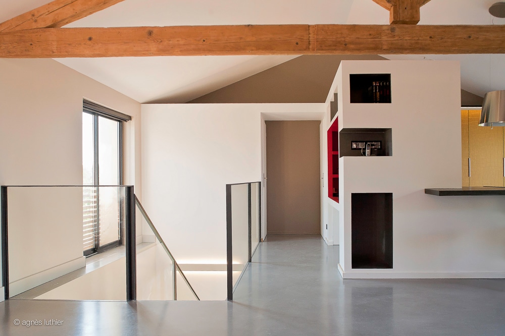 Création des espaces en respectant le style de l’immeuble, verrière, salle d’attente en verres texturés hauts en couleurs et à l’abri des regards.