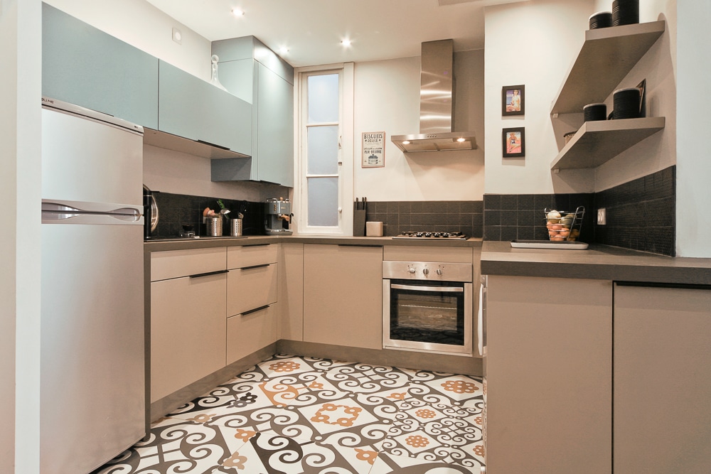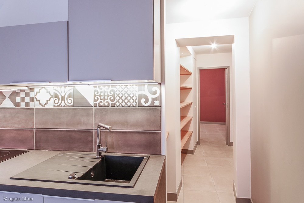 Création de mobilier sur-mesure pour l’espace bureau, choix des matériaux, couleurs et parquet chevron…
